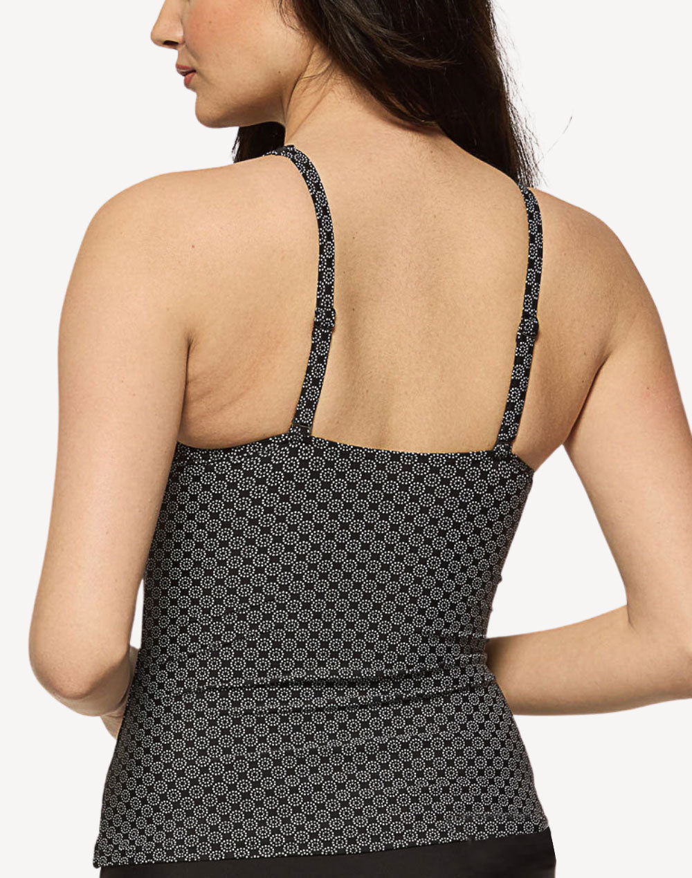 Featuring a sweetheart neckline and double lined bodice for tummy control, the Onyx Dot F Cup Tankini Top is the perfect piece for your next getaway.