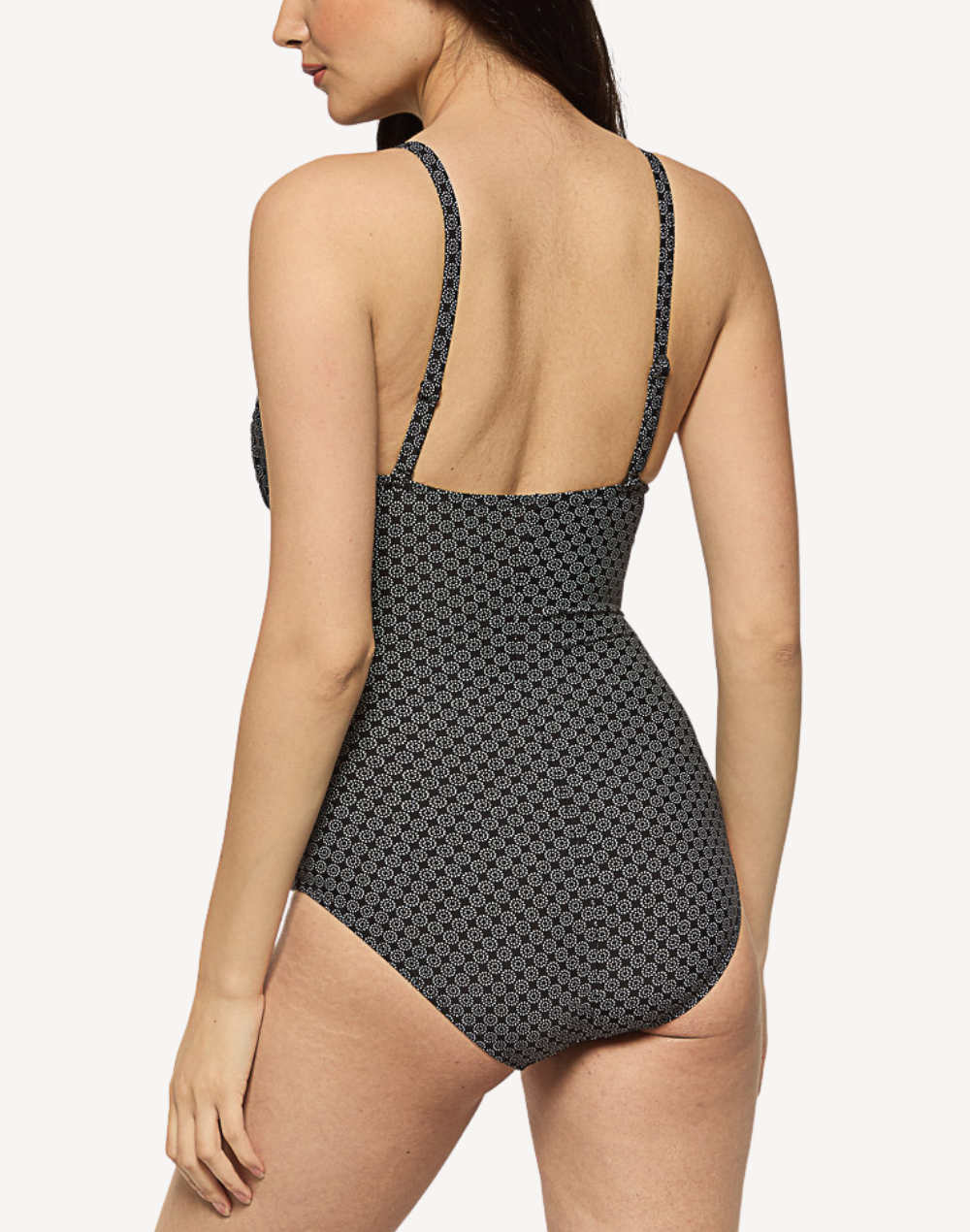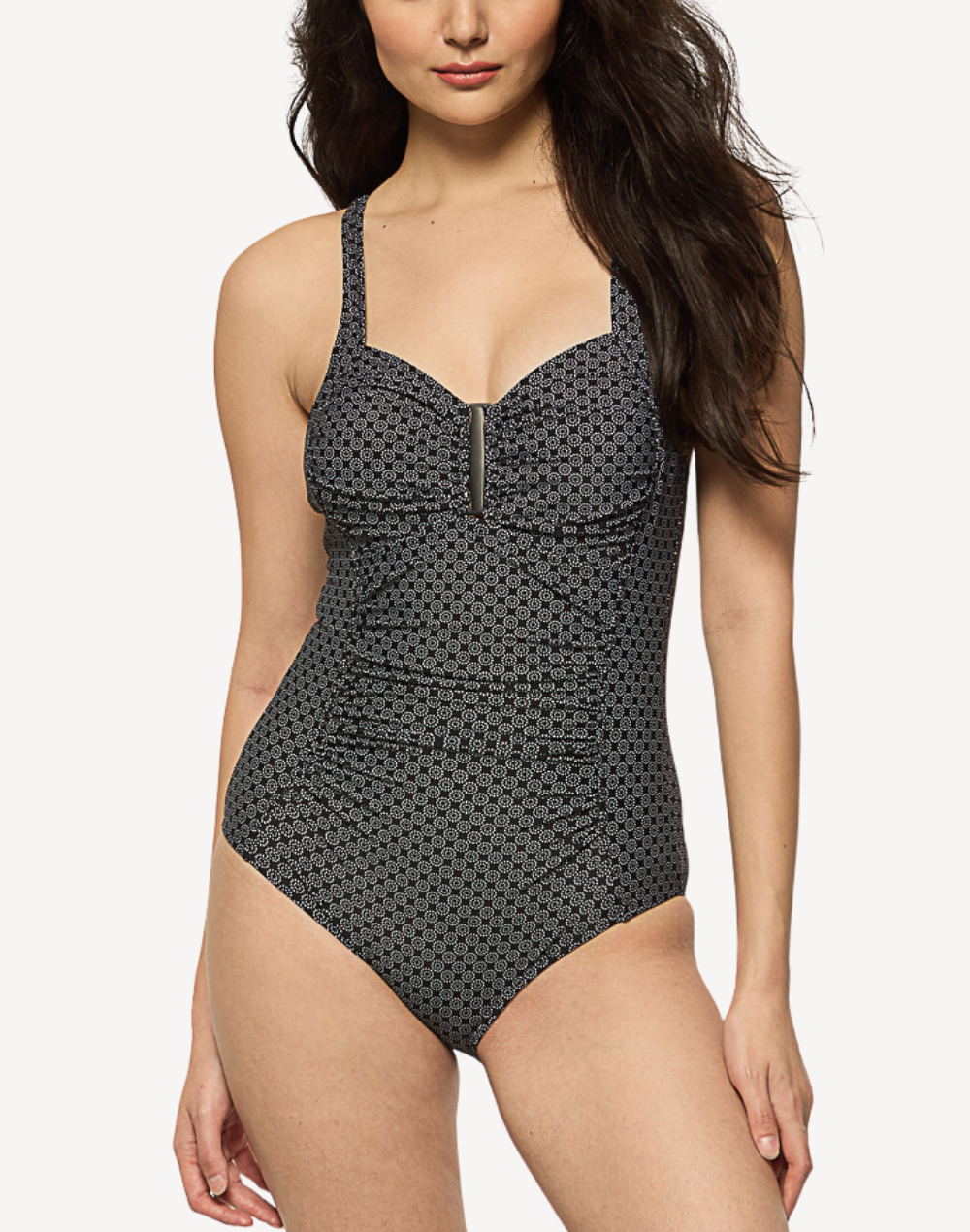 Featuring a sweetheart neckline and double lined bodice for tummy control, the Onyx Dot Soft Cup One Piece Swimsuit is the perfect piece for your next getaway.
