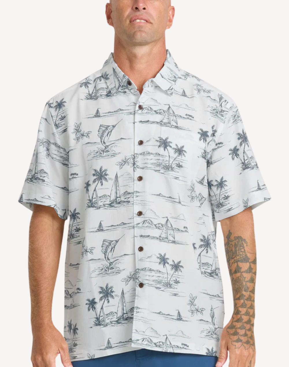 Tropical vacations await in our breezy Sail Away Short Sleeve Shirt. With a short sleeve woven cut in an all-over island print, this garment-washed cotton / viscose blend delivers a lived-in softness from the very first wear. Effortless comfort for the endless summer.