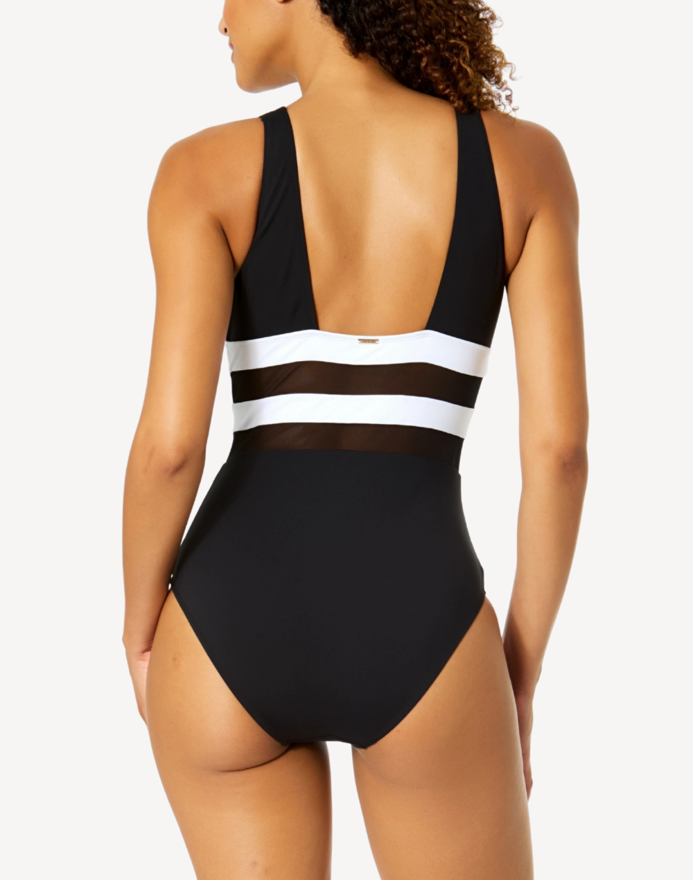 The Garbor Mesh Plunge Front Colourblock One Piece Swimsuit is the perfect one piece swimsuit from Anne Cole created for comfort style and confidence. This womens designer piece features flattering shaping and soft premium fabric perfect for beach pool and resort wear.