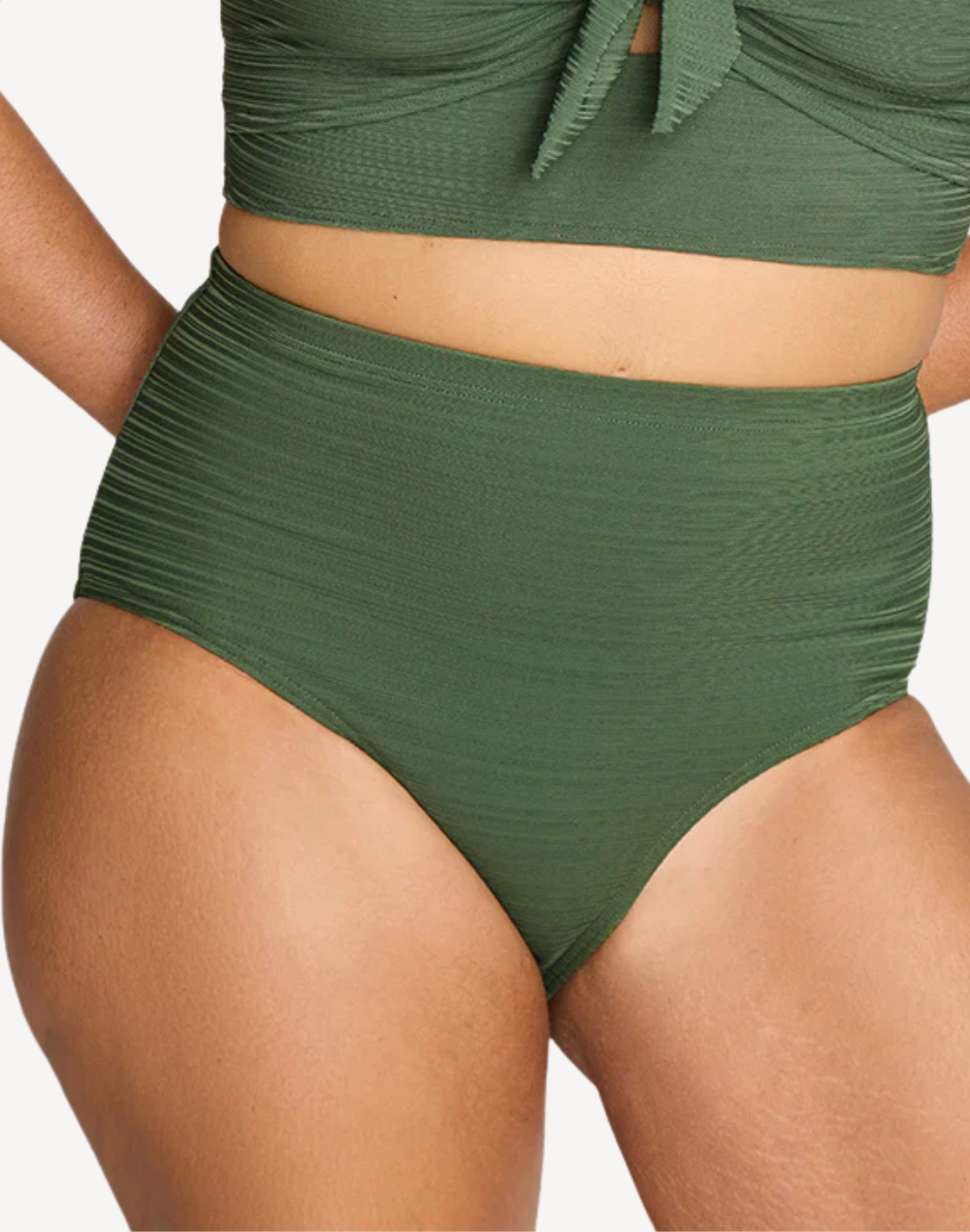 The modern cut of the Aria Renoir High Waist Plus Size Bikini Bottom will enhance your waist and give you a little extra coverage.