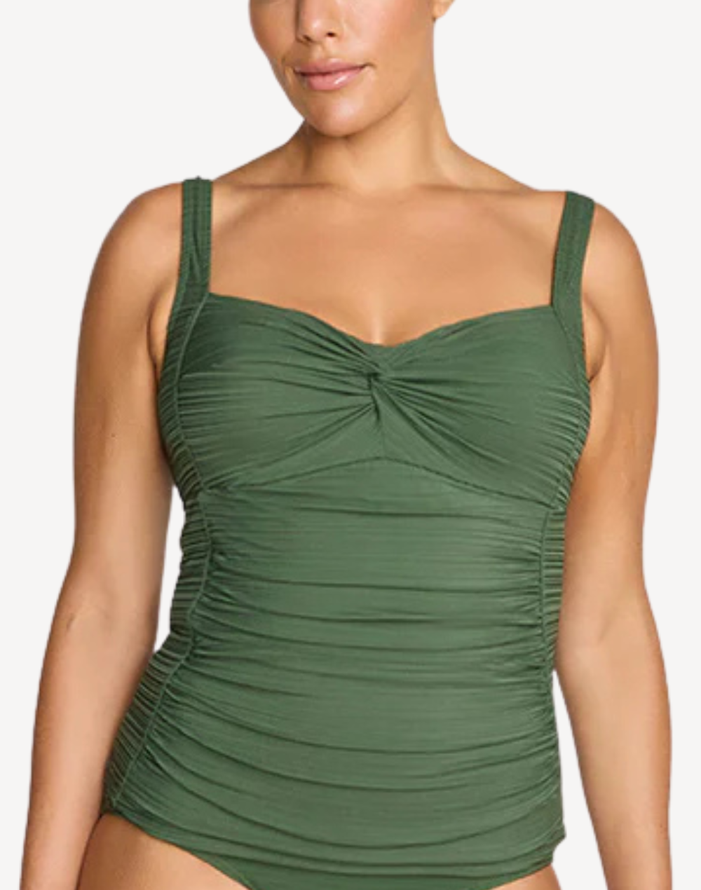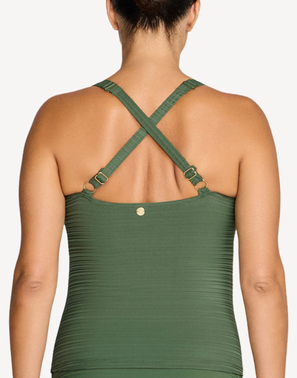 The modern and elegant cut of the Aria Botticelli Plus Size Tankini Top will enhance your curves and elevate your beach style.