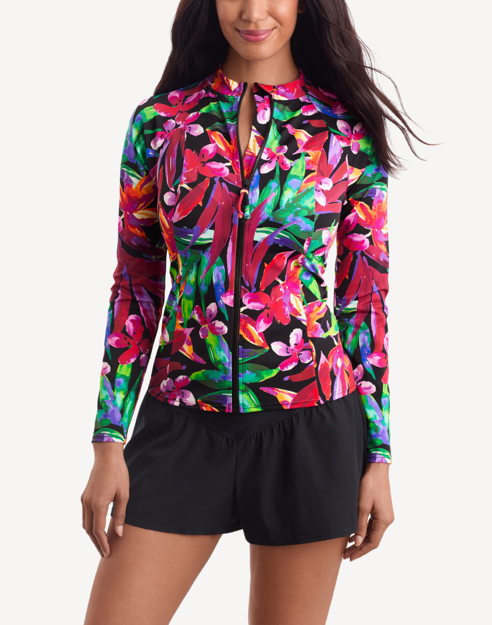 Secret Jungle Zip Front UPF 50 Long Sleeve Swim Shirt