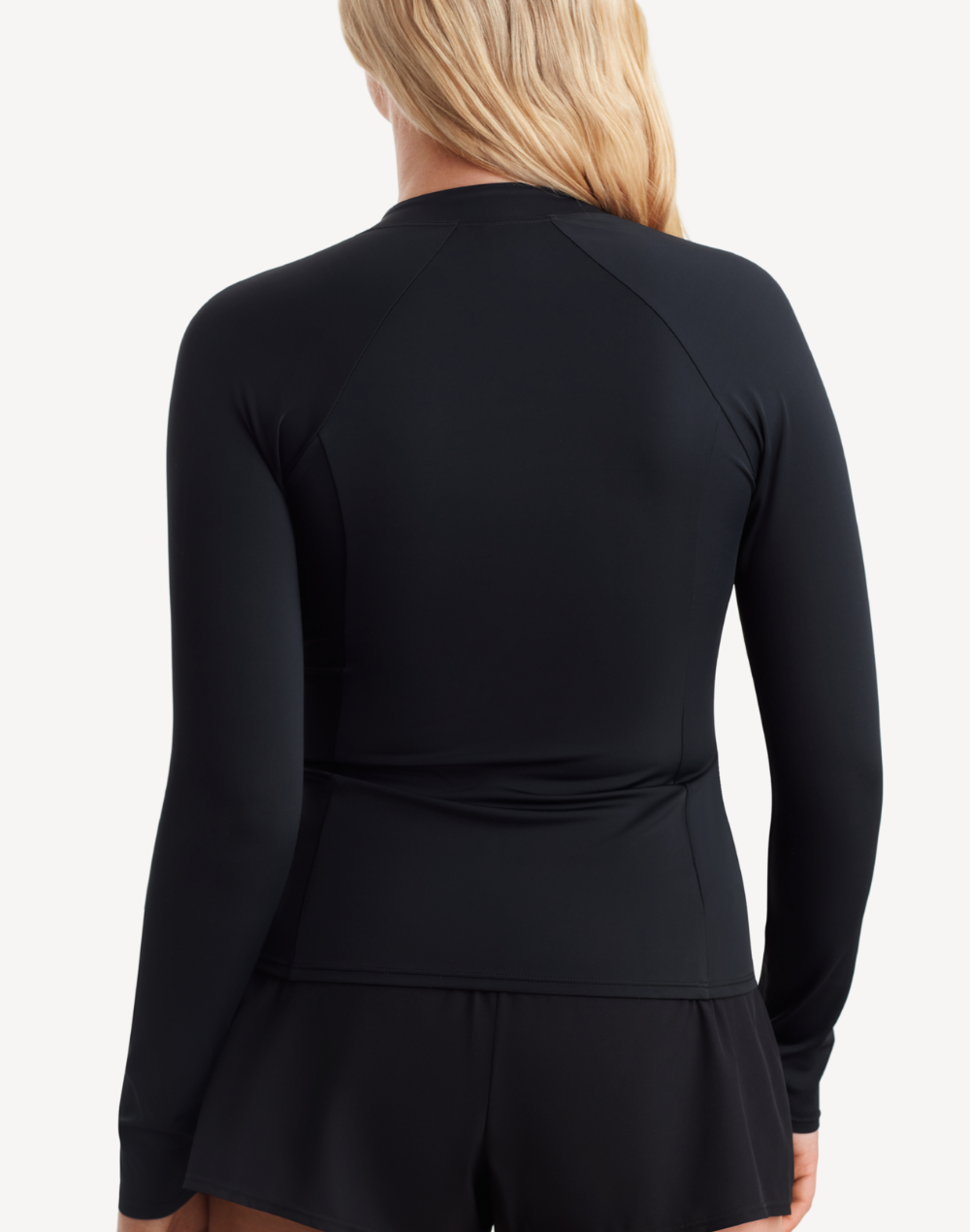 Solid Zip Front UPF 50 Long Sleeve Swim Shirt