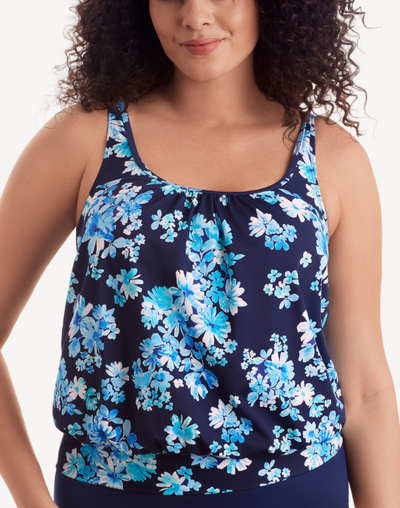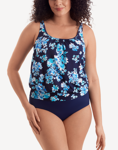 Fancy Flamingo Shirred Neck Blouson Tankini Top